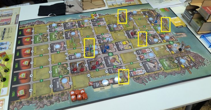 遊戲 BGG連結。照片按右鍵在分頁開啟,可看到完整大小圖片。這場是拓荒場,我跟對手都是第一次玩這款遊戲。我扮演…